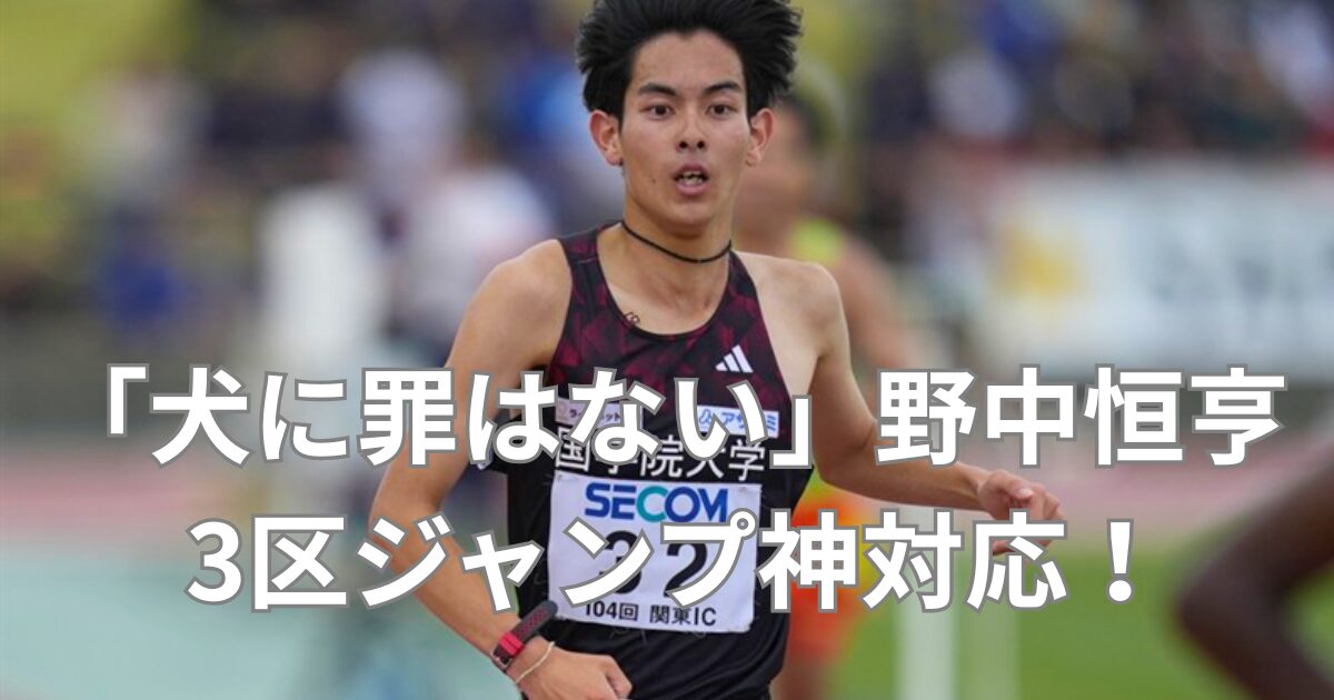 コースに迷い込んだ一匹のポメラニアンと、それを華麗にかわした國學院大學・野中恒亨選手の姿でした。