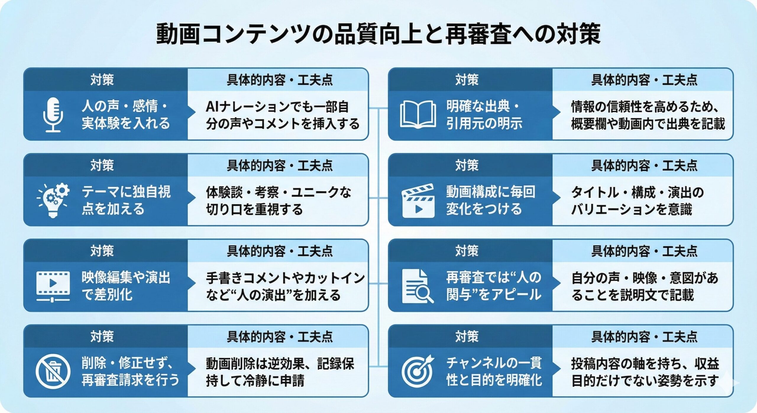 焦って中途半端な修正で再審査に挑むのではなく、チャンネル全体の健全性を完璧に整えてから勝負に出ることが、結果的に最短ルートになるはずです。